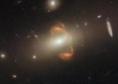 در این تصویر تلسکوپ فضایی هابل چیز عجیبی دیده می گردد. اگر به دقت نگاه کنید، می توانید دو کهکشان تقریباً آینه ای نارنجی رنگ را ببینید که ظاهراً به وسیله یک رشته طولانی به هم متصل شده اند.