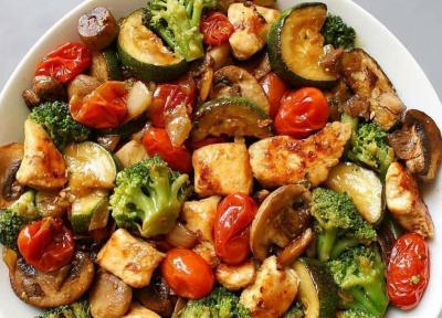 طرز تهیه خوراک مرغ و سبزیجات رژیمی مجلسی خوشمزه با قارچ، این خوراک خوشمزه را میتوانید همراه با لوبیا چیتی و استفاده از انواع کلم تهیه نمایید .