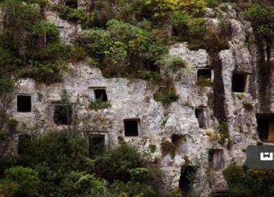 گورستانی با مردمانی که در زیر صخره های آهکی سیسیلی دفن شدند.