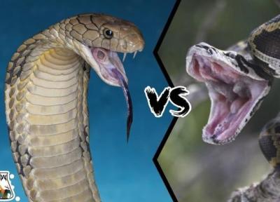 جدال دیدنی مار پیتون با شاه کبرا