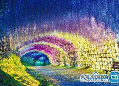 دیدنی های تونل ویستریا و عالمی رنگارنگ از گل ها
