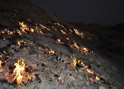 در جاده رامهرمز به سمت رود زرد و در مسیر خیجه و ماماتین بعد از روستای گنبد لران، کوهی آتشین وجود دارد که از گذشته های دور تا کنون شبانه روز میسوخته است، مردم محلی به این کوه تشکوه میگویند.